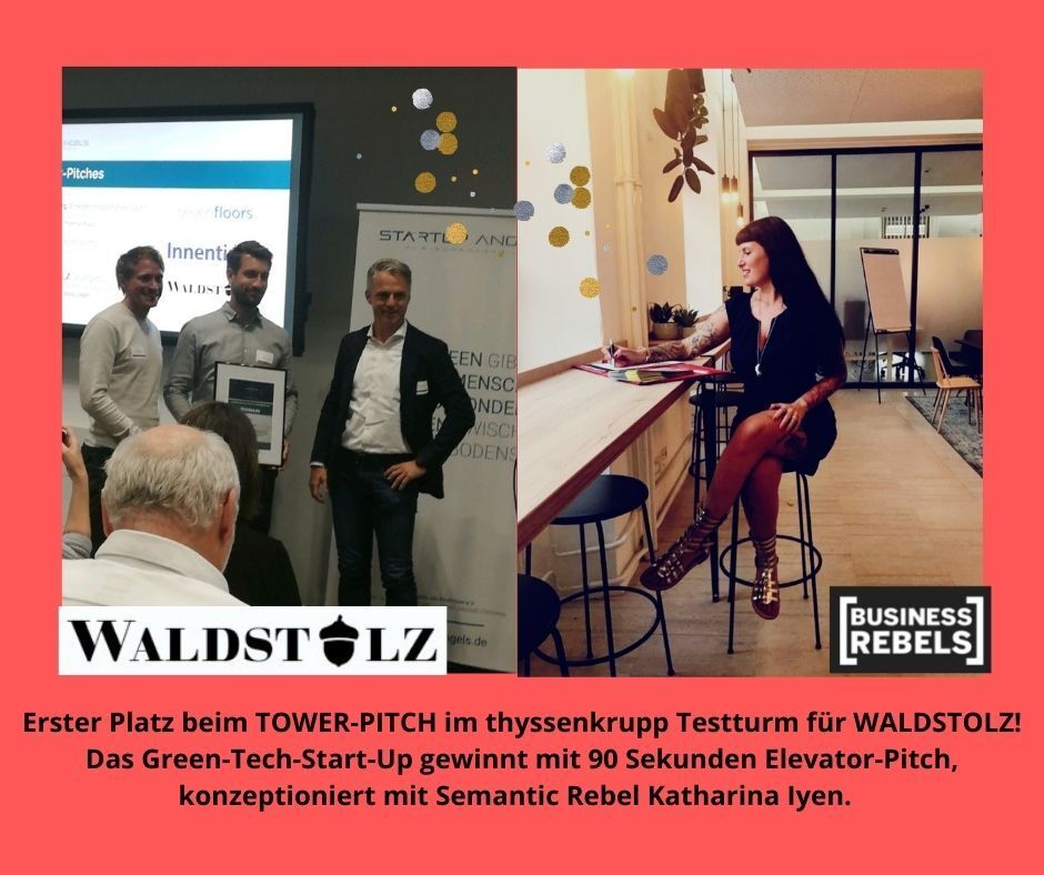 Mehr Spaß und Success mit Storytelling-Pitch von unserem Semantic Rebel Kat! Das grüne Start Up WALDSTOLZ hat mit ihr einen rebellischen Elevator Pitch entwickelt.